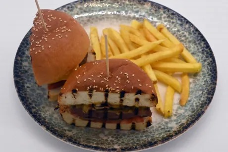 Patates kızartması, ızgara mantar, cheddar peyniri